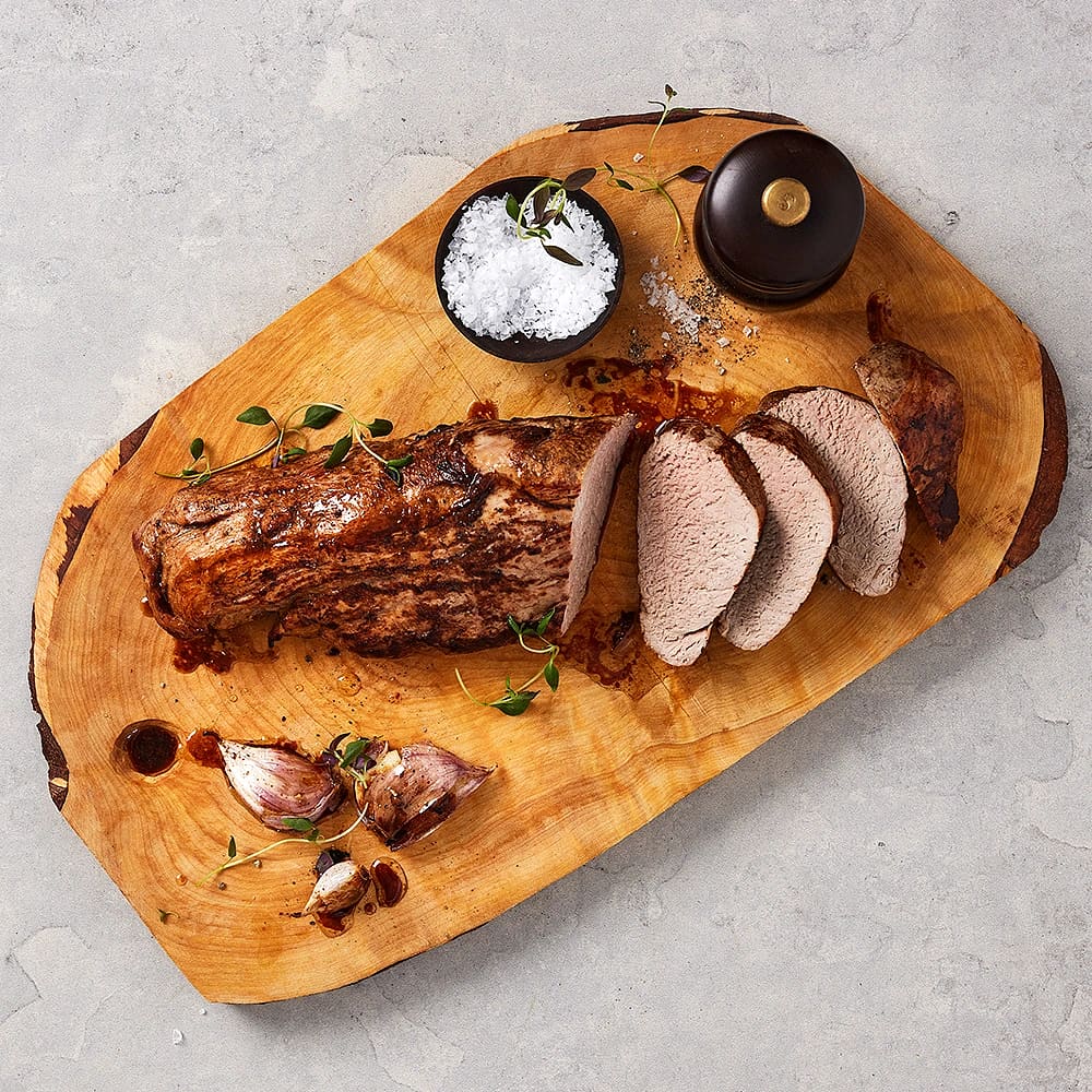 Lördagsklassiker med skivad fläskfilé, örtsmör och ugnsstekt potatis samt grillad zucchini.